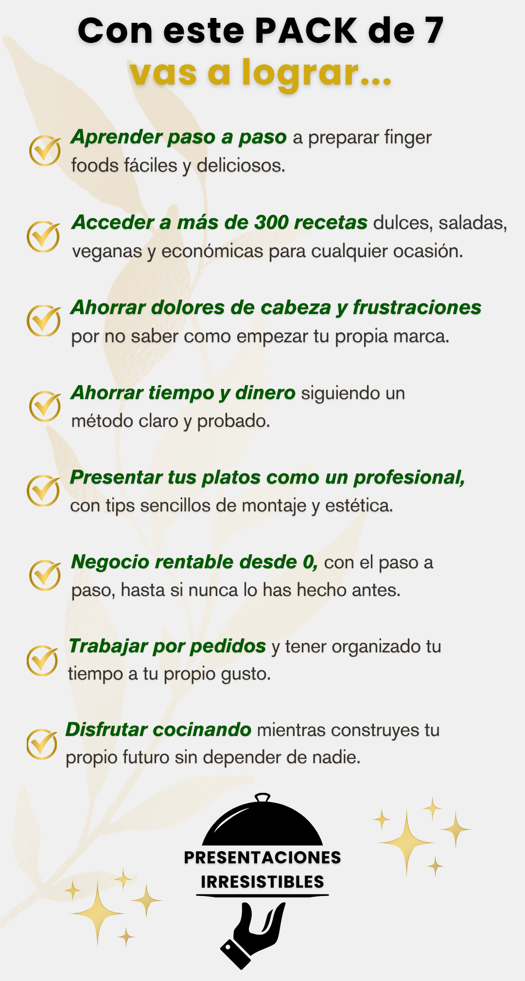 Aprende paso a paso cómo crear bocaditos irresistibles, presentar tus platos con estilo profesional y ofrecer un servicio que tus clientes recordarán.