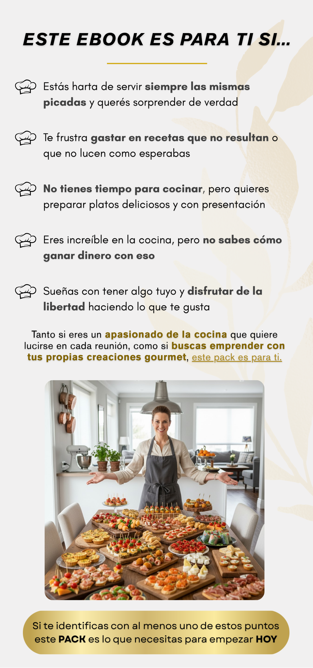En el ebook “De Anfitrión a Empresario Gourmet” encontrarás consejos y estrategias para vender tus preparaciones, calcular costos y presentar tus productos de manera profesional.